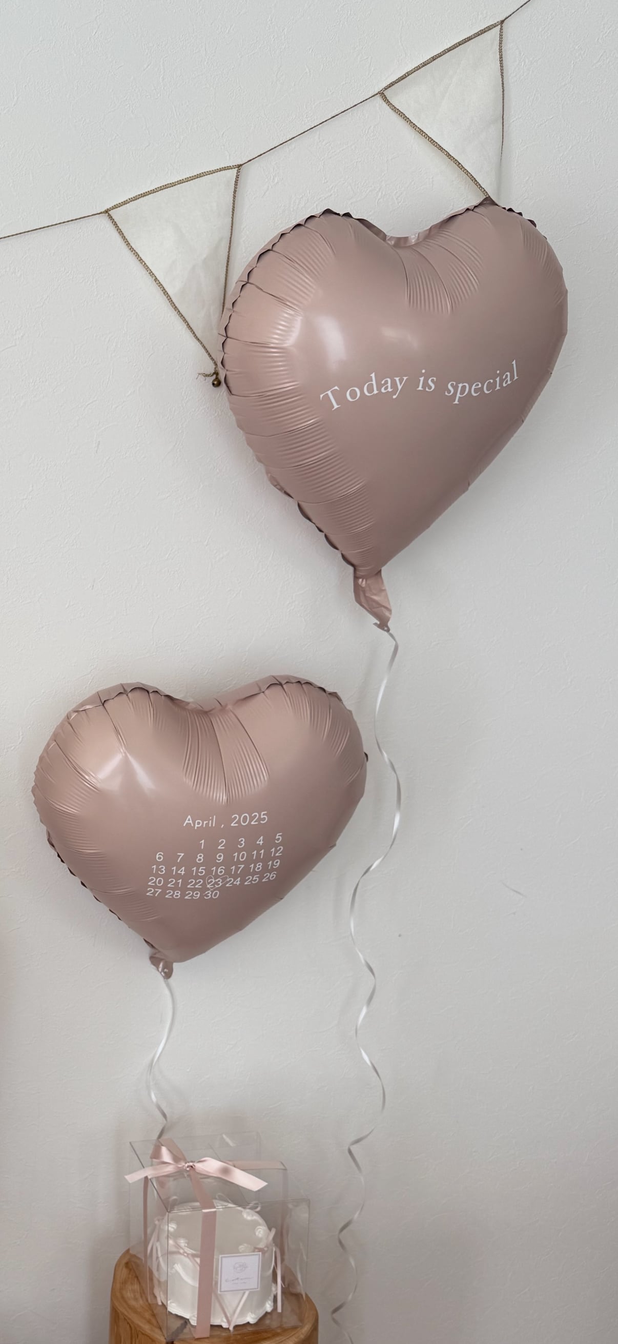heart calendarステッカーとToday is specialのステッカーを貼った計2つのバルーンがセットになっております。
